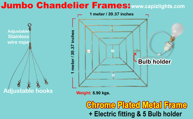 – All Hanging Chandeliers product are made of capiz shell chips, chrome plated metal frames, adjustable stainless wire rope with hooks,