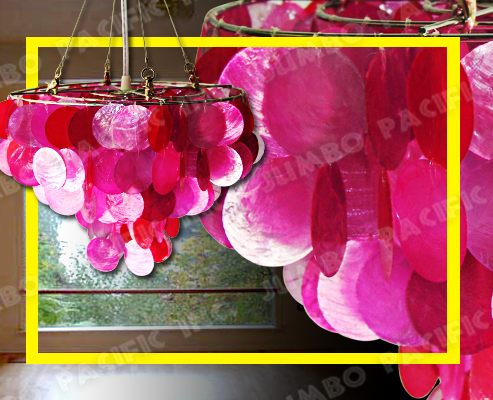 Hanging Capiz Chandelier in fuscha color