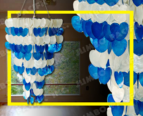 Description: 3 layers Capiz chips natural white and blue in heart design.