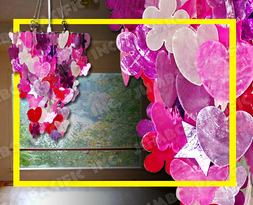 Description: 2 layers Capiz chips pink in heart design.