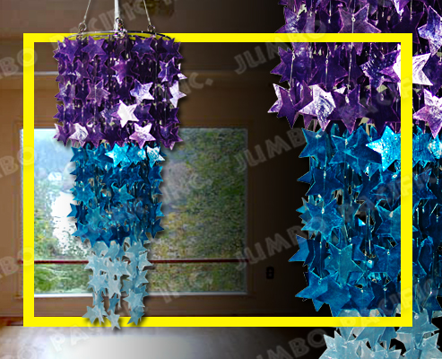 Description: 3 layers Capiz chips violet, blue and light blue in star design.